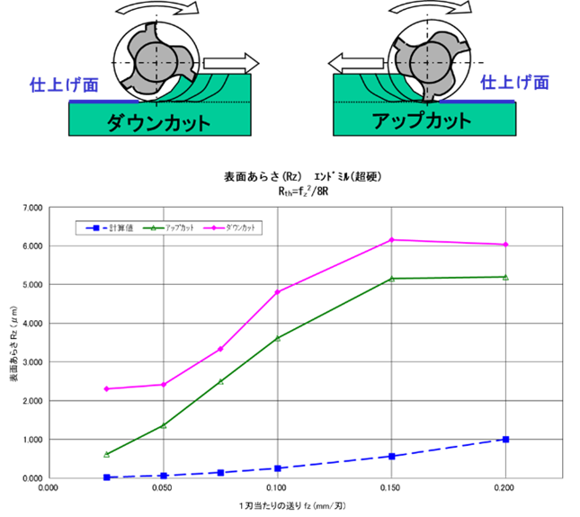 ロ.エンドミル加工におけるアップカットとダウンカットによる表面粗さの影響