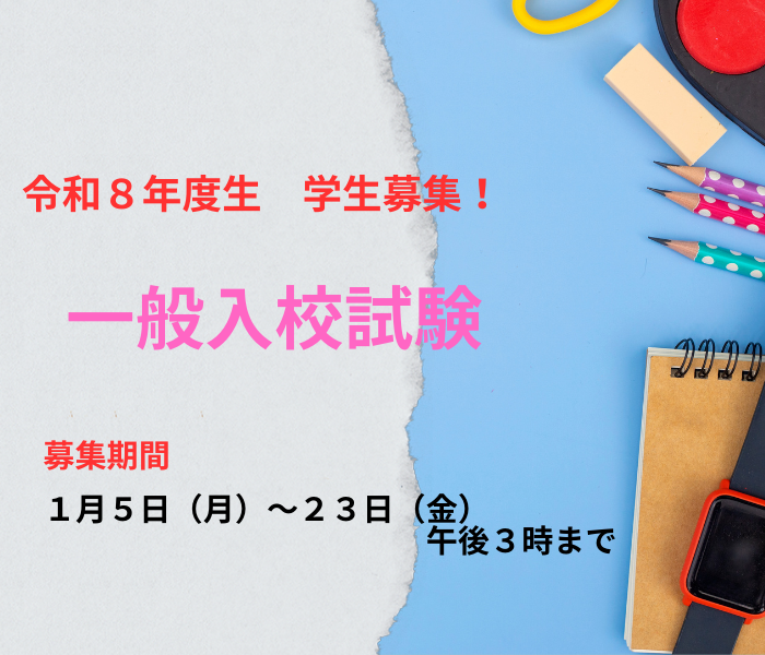 - 【令和8年度入校生募集】一般入校試験の応募受付は、1/5からです(1/23まで)