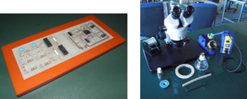 温調式はんだこて、プリント基板、電子部品、実体顕微鏡、工具一式 |