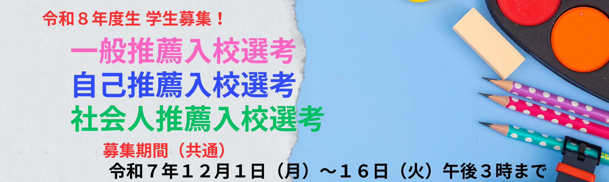 - 一般推薦入試(公募制)、自己推薦及び社会人推薦入試の応募を受付中です(12/16まで)