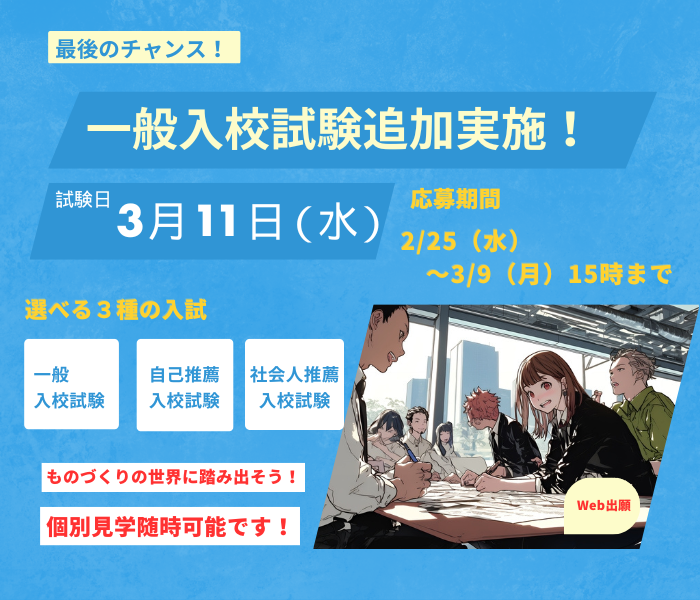 - 【令和8年度入校生募集】一般入校試験を追加で実施します!(応募期間2/25~3/9)