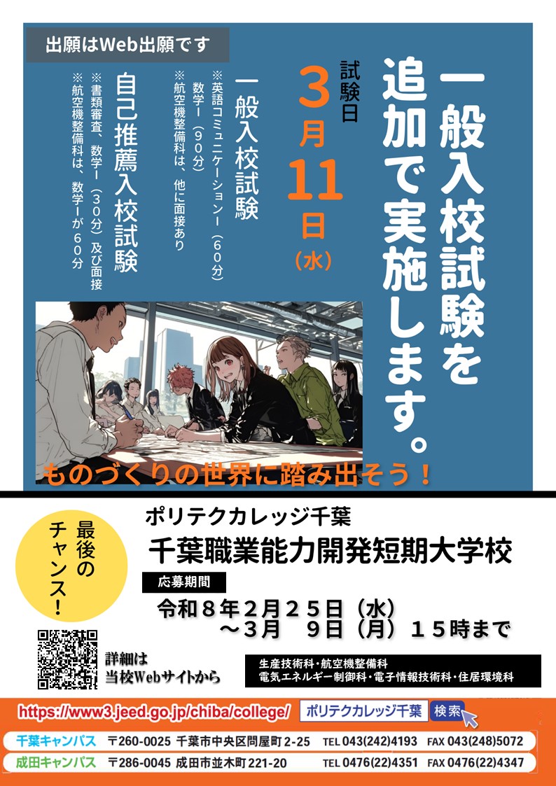 【令和8年度入校生募集】一般入校試験を追加で実施します!(応募期間2/25~3/9)