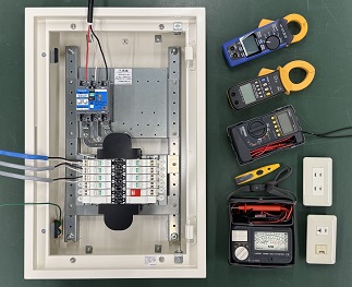 検電器、テスター、クランプメーター、絶縁抵抗計(メガー)などの各種測定器を使って分電盤の点検・測定実習を行います。測定器の使い方、実際の測定方法、測定のコツを解説します。1人につき1台の分電盤と測定器を用意していますので、実機に触りながら測定の練習ができます。