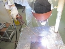 被覆アーク溶接の基本的な座学と水平すみ肉溶接・突合せ溶接などの実技作業を行います。