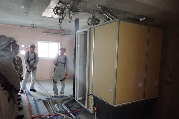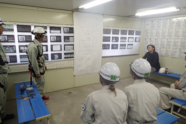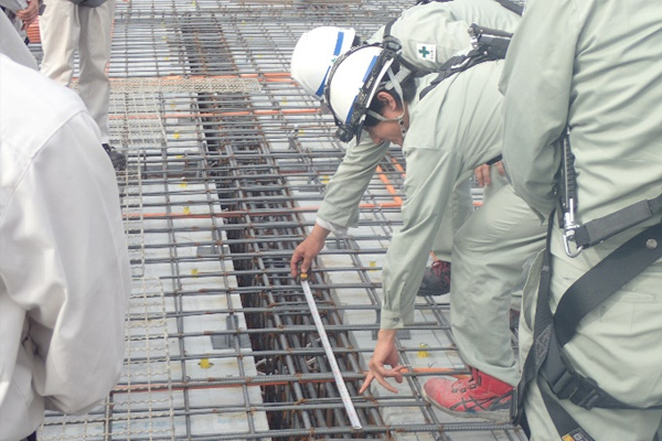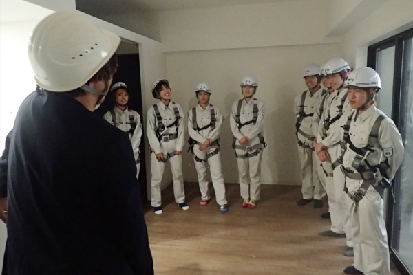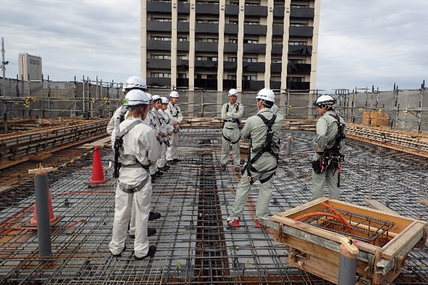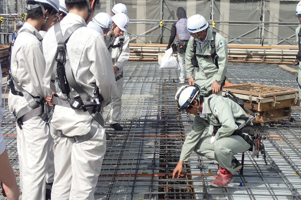 普段は教科書や模型で学んでいる鉄筋コンクリート造の構造を、実際の現場で目の前にした学生たち。責任者の方からの説明を受けながら、目を輝かせて聞き入る姿がとても印象的でした。