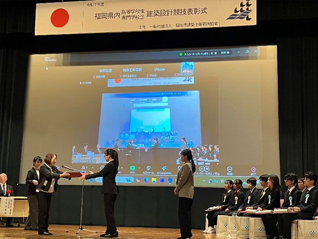 令和7年度 福岡県内高等学校生・専門学校生 建築設計競技にて、本校建築科2年の学生が 佳作・奨励賞 を受賞しました!