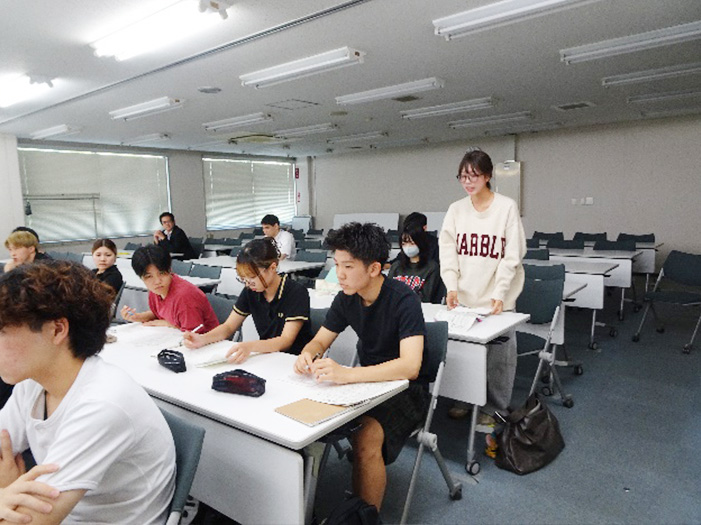 ※新型コロナウイルス感染症防止のために、窓を開けエアコンを使用しています。実習という性質上、学生間の距離は近くなりますが、手洗い、アルコール消毒、マスク着用を徹底しております。