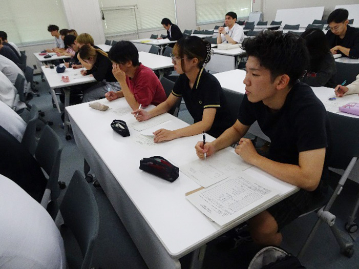 はじめに、本校の特色や教育内容、進路支援体制などについて全体説明を行い、その後は各科に分かれて体験授業を実施しました。