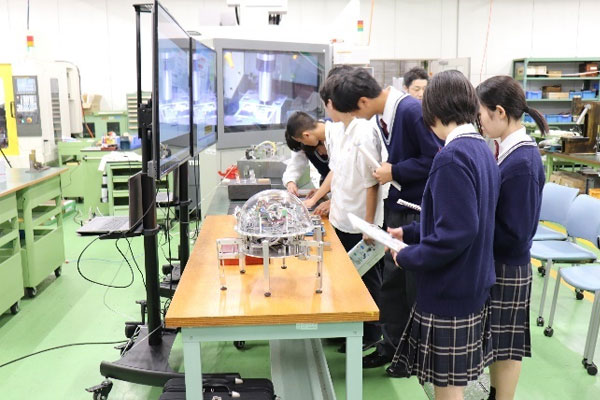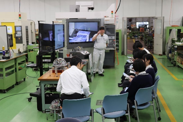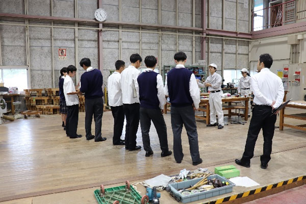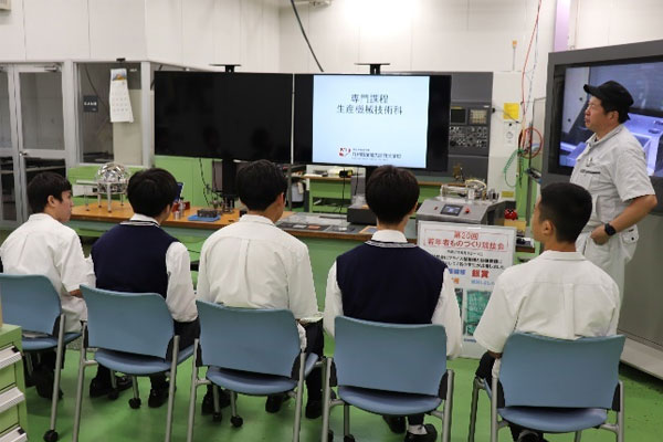はじめに、当校の概要や入試などの全体説明を受けた後、各学科の実習場や教室を見学しました。見学中は担当の先生方から、教育内容や実習の様子、卒業後の進路などについて詳しく説明があり、生徒たちは熱心に耳を傾けていました。実際の訓練機器や学習環境を見ることで、ものづくりや専門的な技術に対する理解が深まり、将来の進路選択に向けて貴重な学びの機会となったようです。