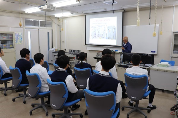 山口県宇部市にある宇部工業高等学校の電気科1年生35名に対し、電子情報系の教員3名で、「未来の電気技術者へ AIの「頭脳」を設計せよ!」というテーマのもと、ニューラルネットワークを利用したAI講習会を、2時間の授業として実施させていただきました。宇部工業高等学校は、1920年(大正9年)創立の学校であり、山口県のDXハイスクール推進事業に採択されている学校です。