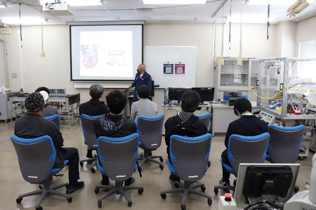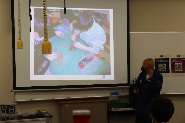 玉井能開教授(生産電子情報システム技術科)から、いずれの競技大会もモデルが実際の産業用ロボットであるため「安全性」と「正確性」が重要な評価ポイントになることや、ロボットを製作する際に必要となる視点について解説がありました。