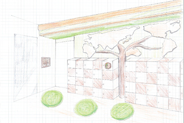 先生方や子どもたちの声を取り入れて仕上げた「エントランス」。