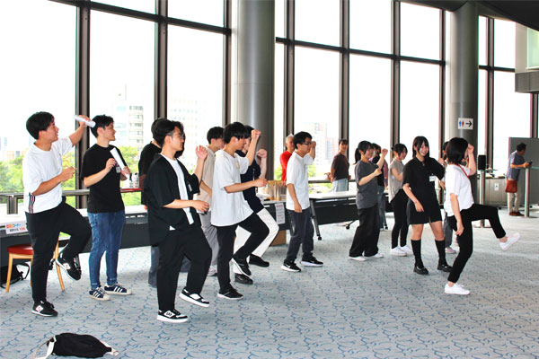観客席でダンスのサポートをする学生たち