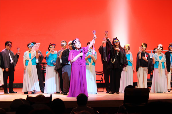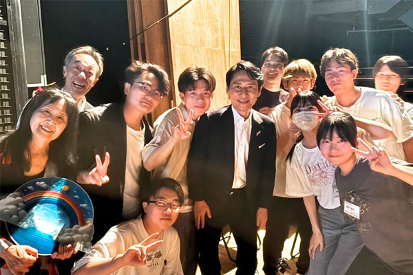 参加した学生たちは、広いステージで障がい者のサポートや共演、舞台袖での小道具の出し入れなど忙しく役割をこなしていました。また、北橋市長も仙人役で登場され、障がい者や学生たちと一緒にステージを盛り上げておられました。