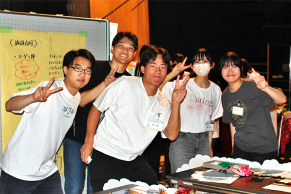 会場運営を担当した学生たちからは、「ドアの開閉を担当し、避難経路の呼びかけやトイレを案内した」、「来場者や車いすのスムーズな通行を確保したり、赤ちゃん連れを案内したりした」、「当日、タヌキの役をやってと言われ頑張った。観客の目の前でダンスを踊り、恥ずかしかったが楽しかった」、舞台上手を担当した学生たちからは、「虫取り少年の役をむちゃぶりされ、観客に見えるようにオーバーリアクションで頑張った」、「道具出し、劇、ダンスと出演機会が多かった。市長と握手し写真を撮った。素朴で親しみやすい方だった」、舞台下手を担当した学生たちからは、「楽器の移動や演者の呼び出しなど、仕事が多かった」、「主催者の方や経験者の方も混乱していて、動くのが大変だった」と感想が聞けました。