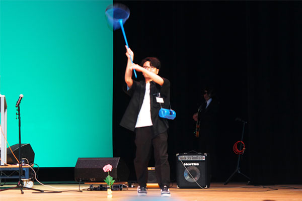 参加した学生たちからは、「司会を担当した。事前に豆知識や歌詞の意味を調べ、プログラム間をトークでつないだ。冗談を話すことにも緊張した。」、「当日、司会の担当が急に決まった。相方に助けられながら分担ができた。紹介メッセージを確認しながら、事前準備を行った。」、「舞台下手で道具の出し入れを担当した。片付ける場所を事前に確認することで、時間オーバーすることなく、スムーズに対応でき、褒められた。」と感想が聞けました。