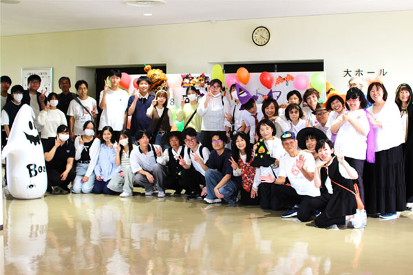 障がい者や高齢者のサポートや共演、舞台袖や楽屋の仕事をしながら、学生たちからは、「車いすの方と一緒に踊ったり、手遊びをしたり楽しかった。」「楽屋にお弁当を配布しながら、河童やピエロの演者に出会えて話をした。」「障がい者の皆さんは陽気で明るく、交流できた。」「舞台では緊張や不安は無く、楽しむことができた。」と感想が聞けました。