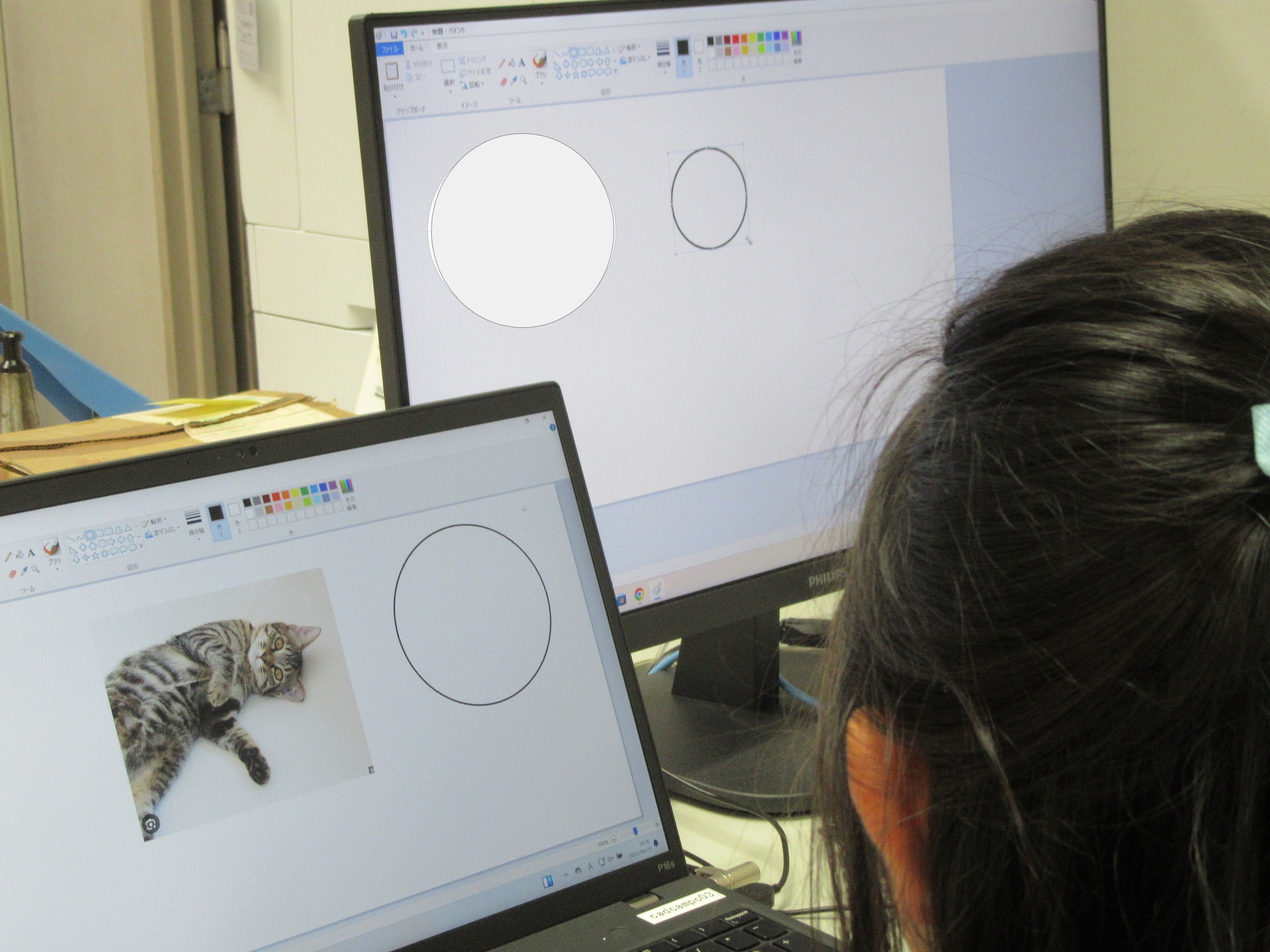 お手本を見ながら大きさを考えています。