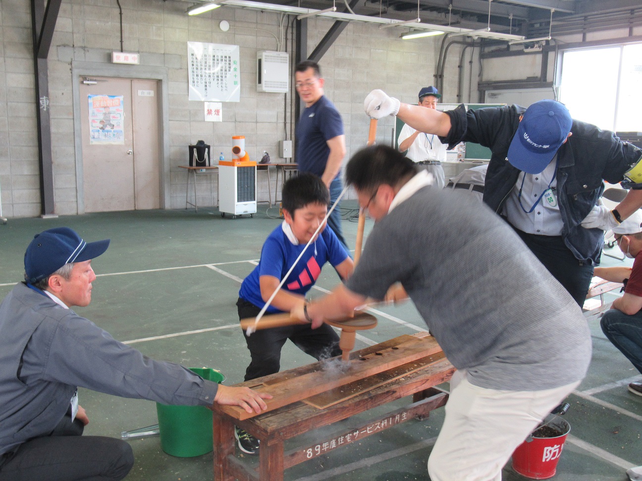木組みの後に金槌でたたく作業です。