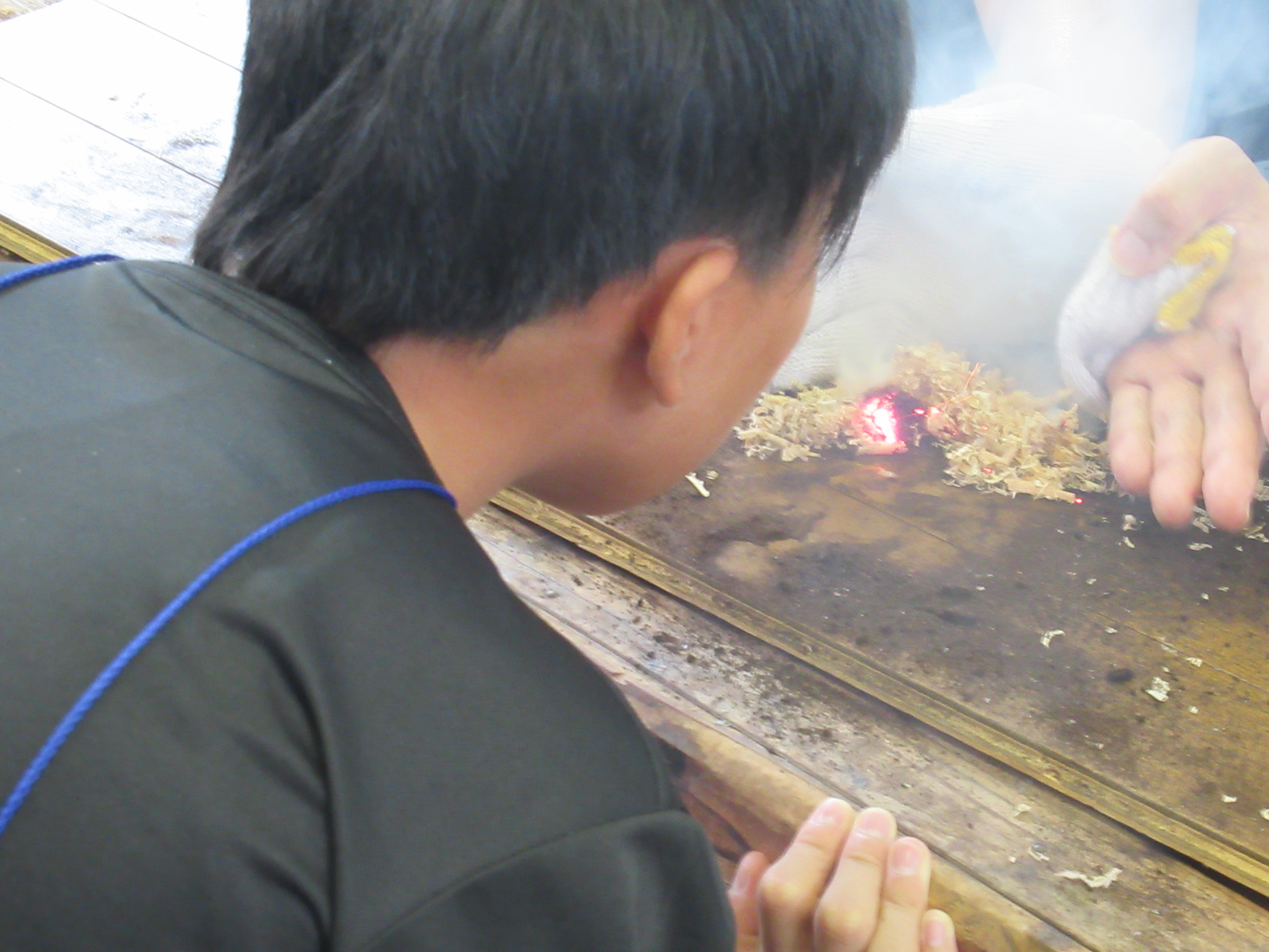 飯塚訓練センター協力のもと、特別企画として火起こし体験を実施しました。