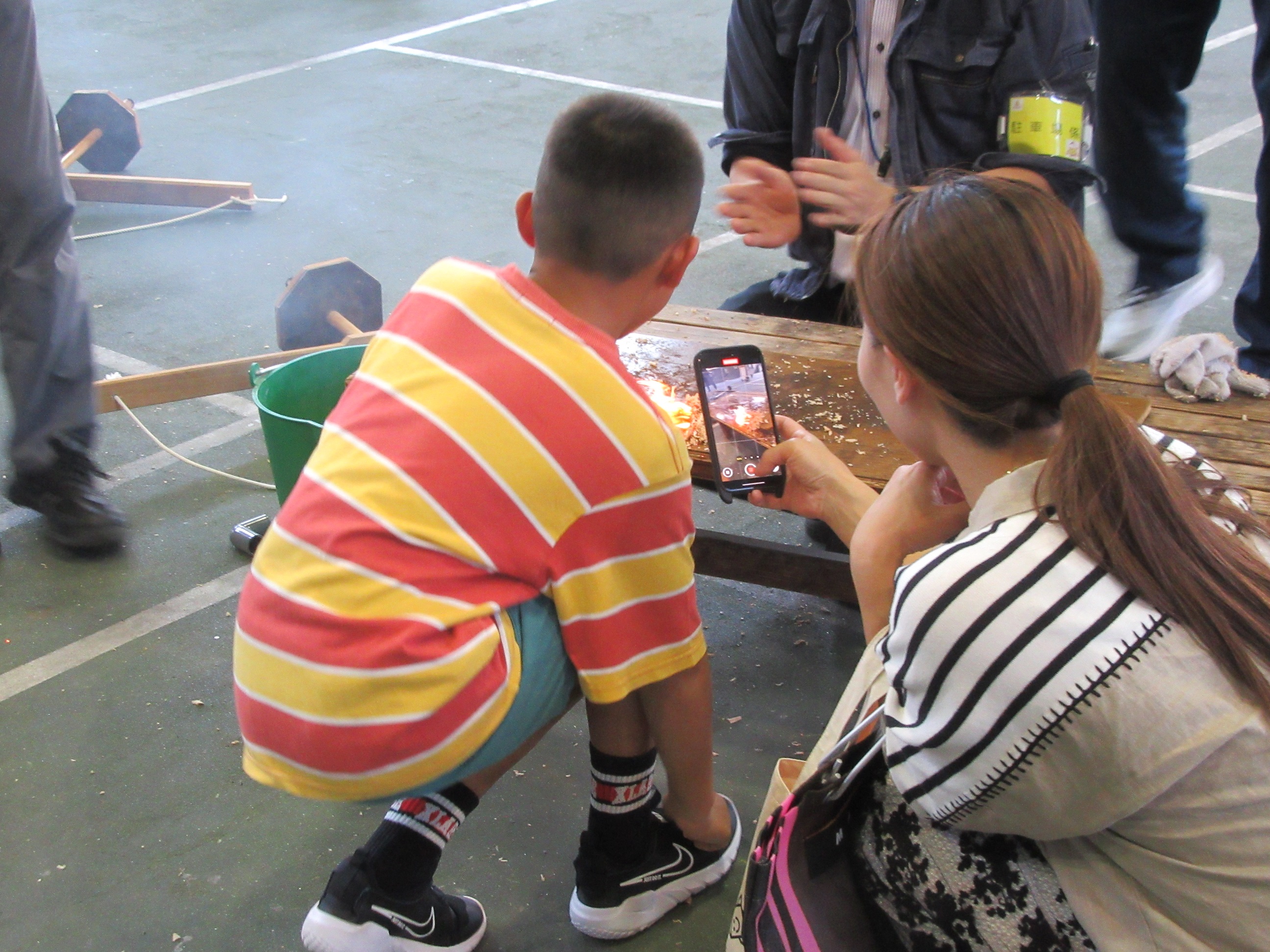 暑い中でしたが、参加者の皆様と職員一同、熱気を込めて一生懸命火を起こしました🔥