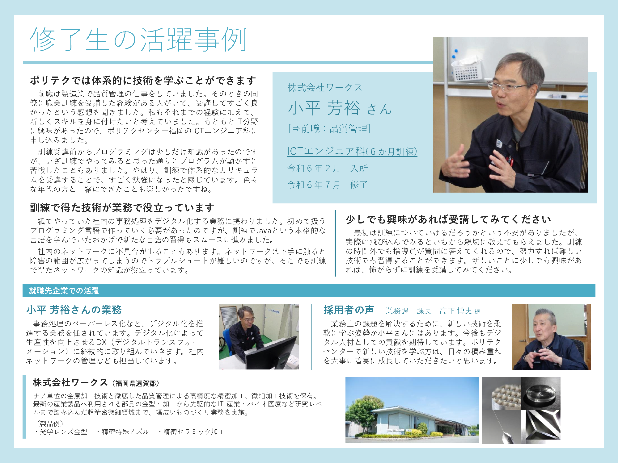 ポリテクセンター福岡の修了生の声ならびに修了生を採用された企業の担当者の声を掲載しています。