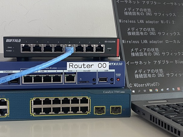 L2スイッチ、L3スイッチ、RJ-45コネクタ、LANケーブル、圧着工具、測定器、パソコン