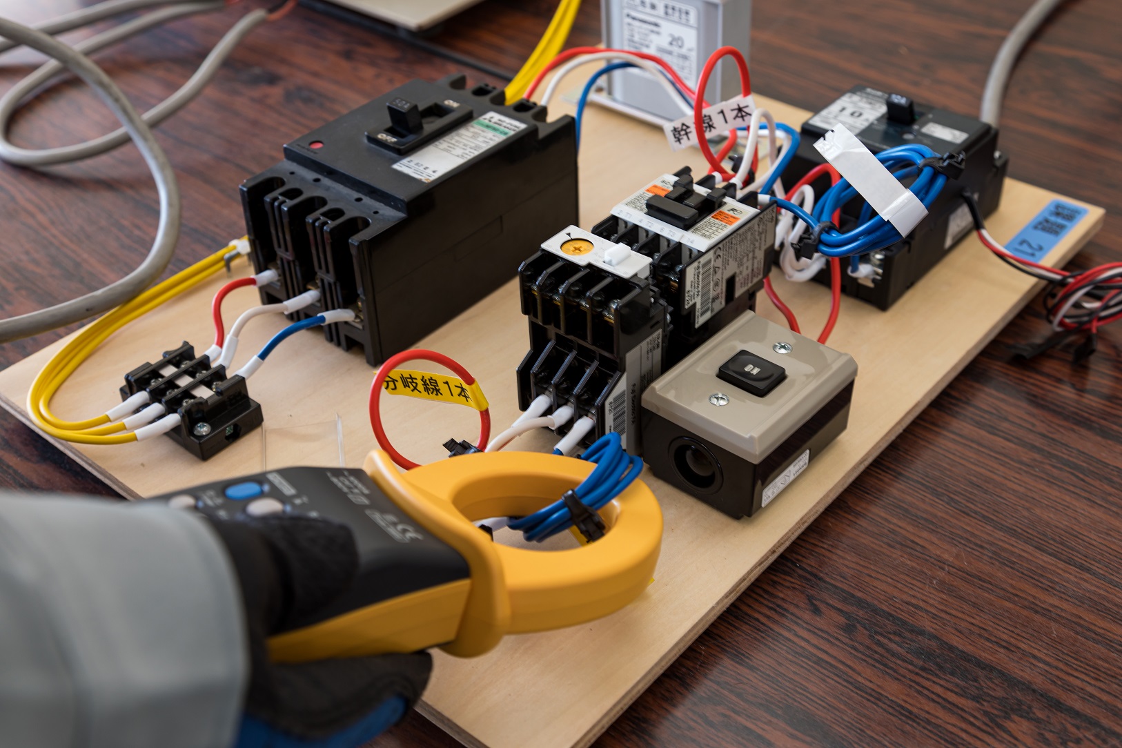 配線用遮断器、漏電遮断器、変流器、電磁接触器、電磁リレー、サーマルリレー、スイッチ、表示灯、ヒューズ、電動機、力率改善コンデンサ、回路計、絶縁抵抗計、クランプ式電流計、回転計、工具