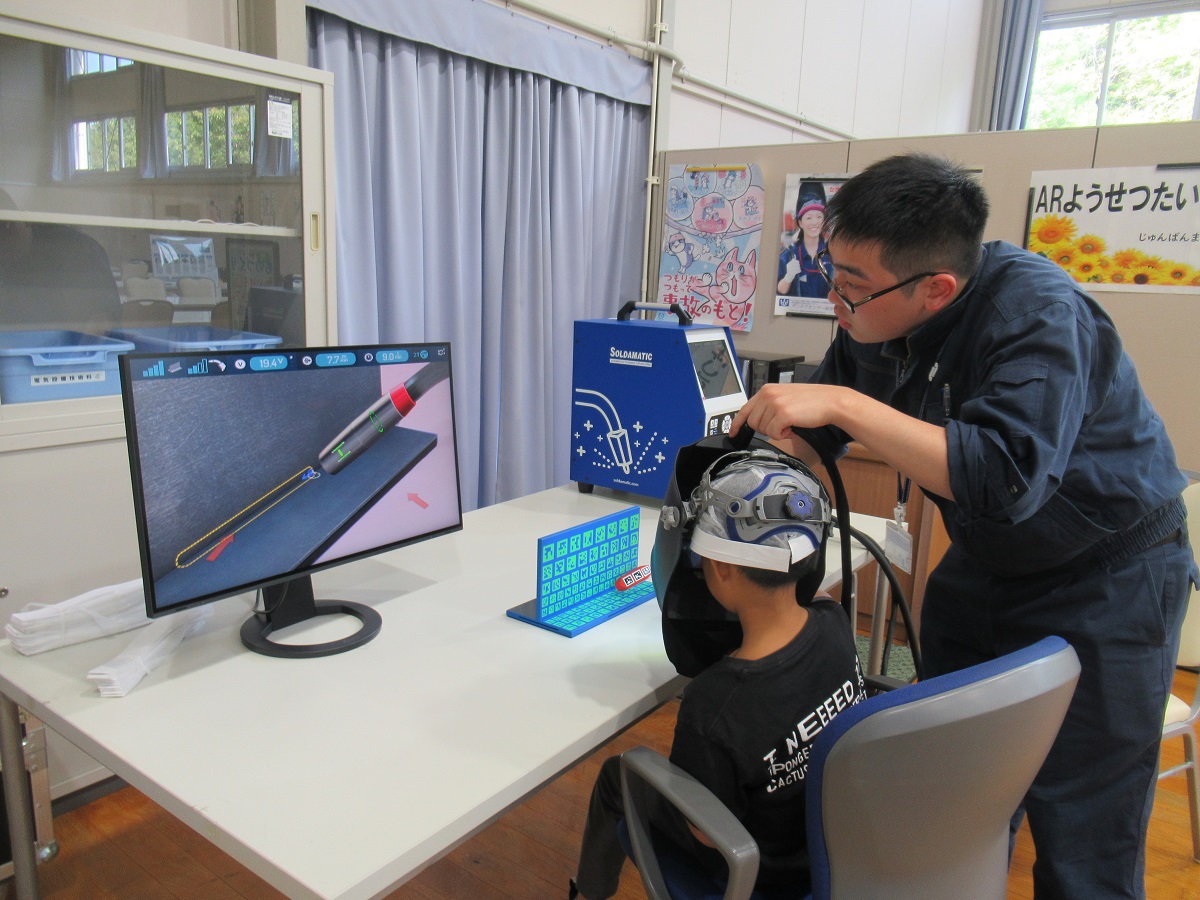 擬似的に金属の加工を体験できる機械で溶接体験を行いました。