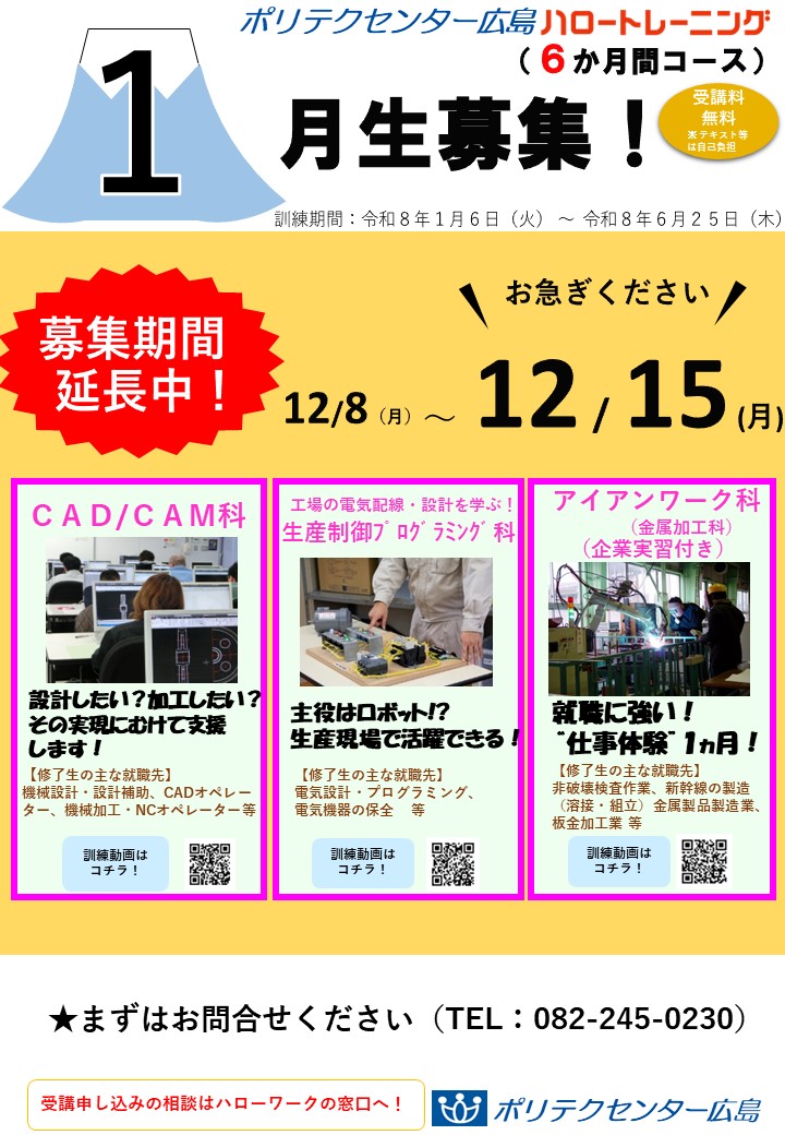 募集期間延長中の訓練コース(12月15日締切)