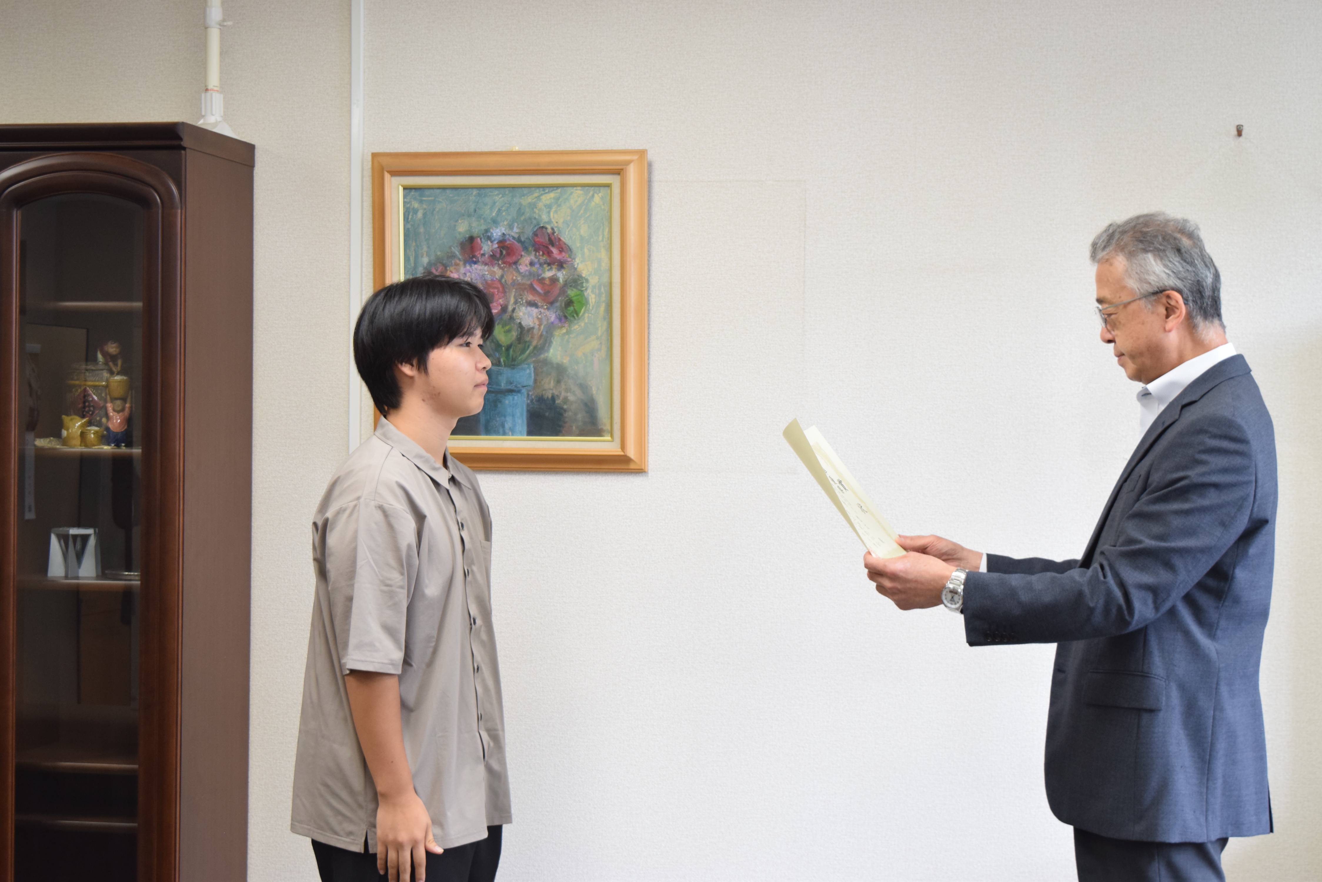 他にもたくさん素晴らしい作品がある中でまさか自分たちの作品が一位になると思っていなかったのでとても嬉しいです。上山先生には総合制作の時にテーマ決めや装置の製作でかなりお世話になったのでとても感謝しています。企業の方などがいる中でプレゼンをすることはすごく緊張しましたが、とてもいい経験になったのでこれからの学校生活などで活かしていこうと思います。