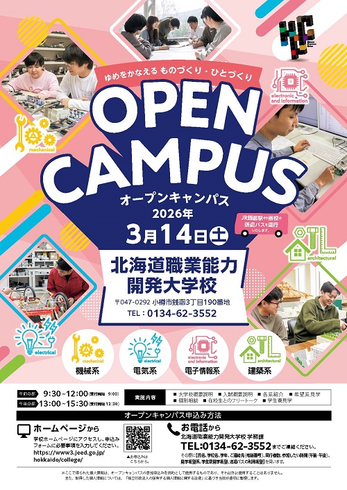 3月14日(土)2026年第1回オープンキャンパスを開催します!