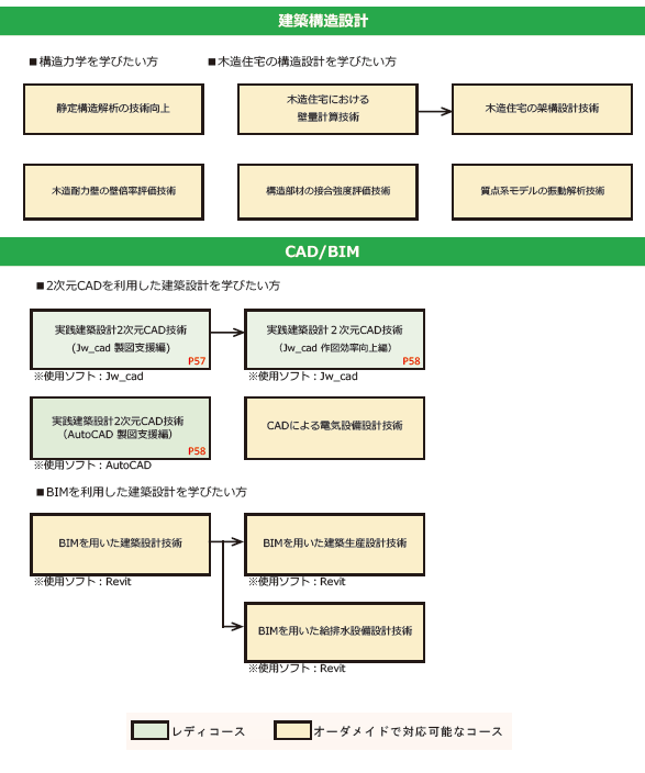 建築居住系セミナー体系図(R8) 令和8年度 建築居住系セミナー 体系図 1)セミナーを選定する際に、ご希望のコースの位置づけをご確認ください。 2)コース名右隅のPOOはR8年3月配布の「令和8年度技能・技術講習のご案内(能力開発セミナー)」のページ数に該当します。お手元に表紙が右画像のパンフレットがございましたら是非、ご参考とされてください。 3)ページ番号のないコース名は、訓練計画専門部会で承認されており、「オーダー」、「レディ追加」が可能です。ご相談をお待ちしております。