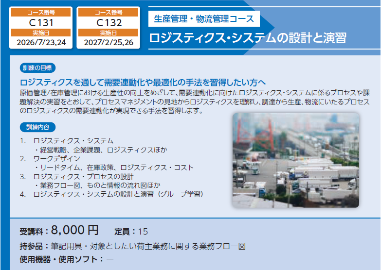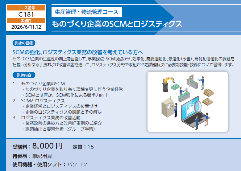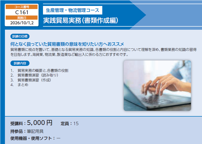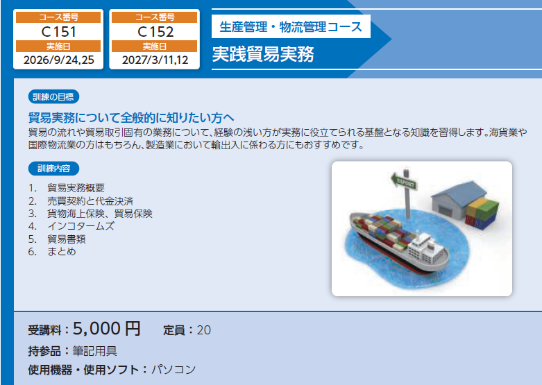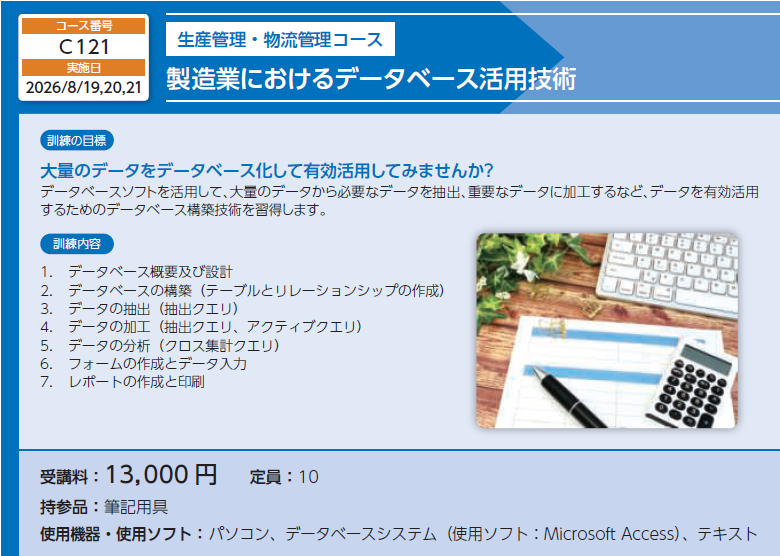 在職者向け職業訓練(能力開発セミナー)のご案内