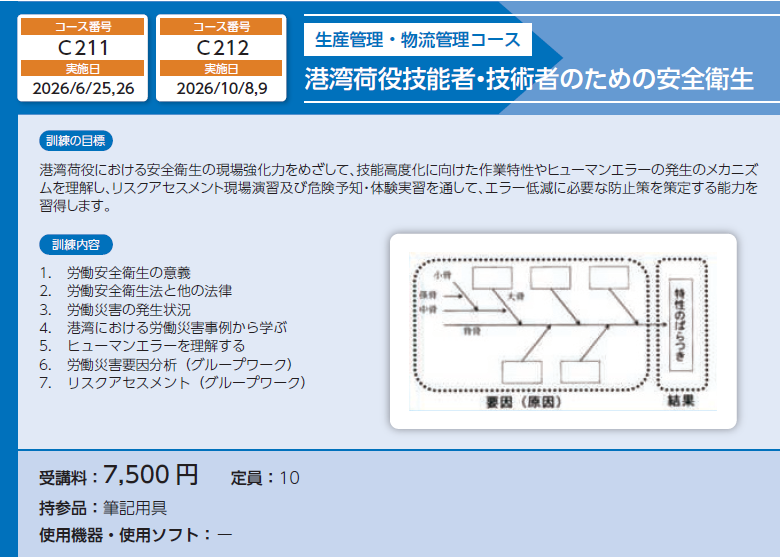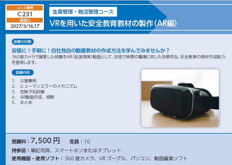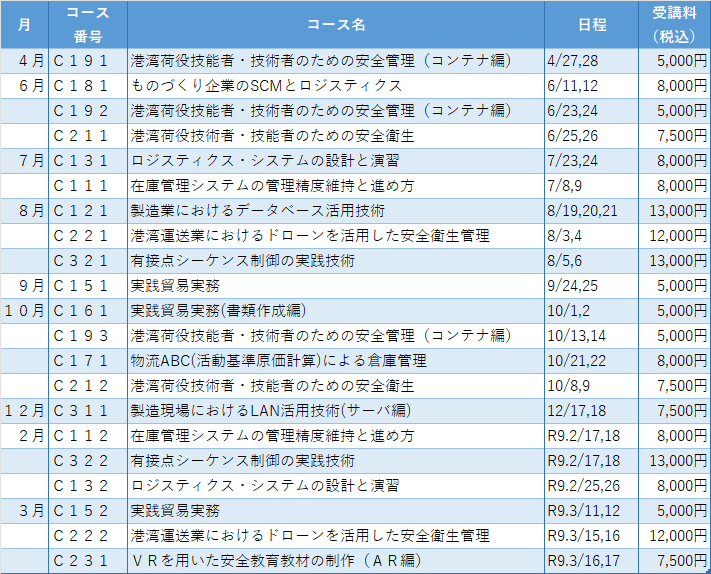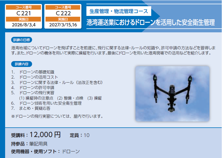 - ◎1コースの訓練時間は12時間以上です。(実施日、時間帯等の調整は可能です)