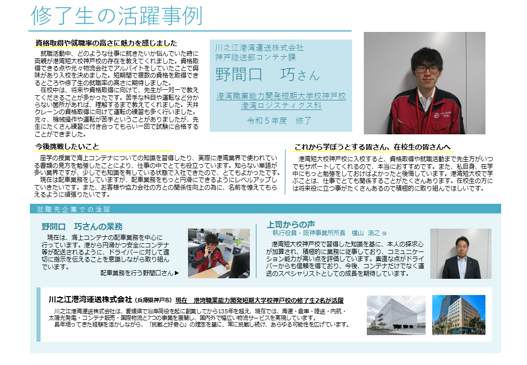 港湾ロジスティクス科の大きな特徴として、6か月間の就労型実習があります。