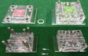 プラスチック射出成形に関わる射出成形金型や射出成形機について、教育用アクリル金型の分解/組立や成形品サンプル