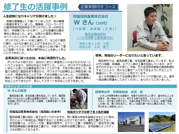 電気設備技術科短期デュアルコース 修了生Wさんの活躍事例 (746.04 KB)