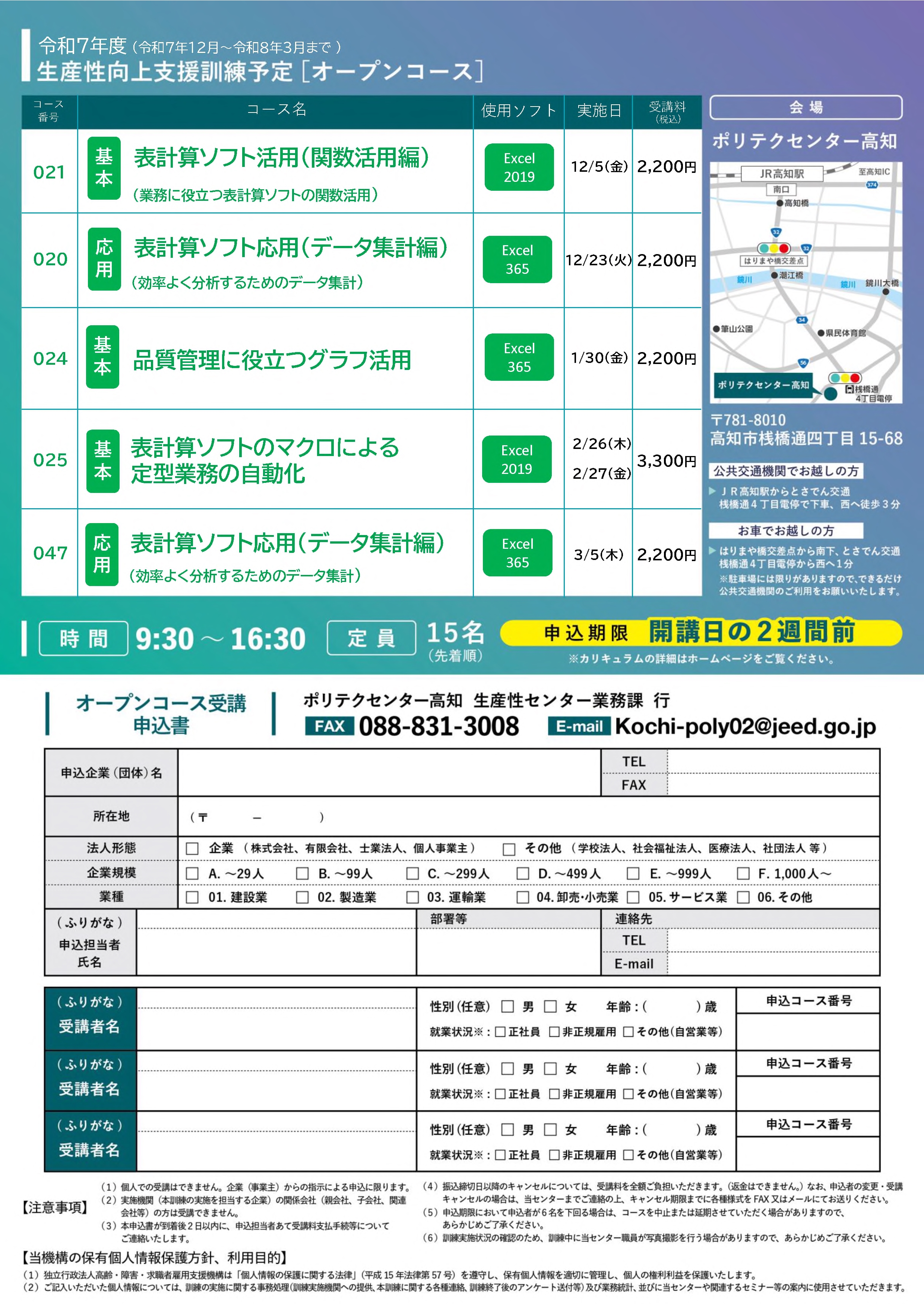会場は全コース「ポリテクセンター高知」です。