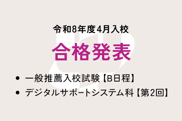 一般推薦入校試験【B日程】、デジタルサポートシステム科【第2回】の合否結果を公開しました。