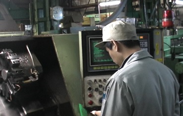 - 同じ形状のものを大量に加工する場合は、加工条件を数値化し、連続自動加工するNC旋盤を使います。NC旋盤では、要求される精度を出すため、最適な加工条件を正確にプログラミングします。 次に、設定が終わったら、精度を確認するための試削りを行います。試作品を正確に計測し、必要に応じて何度でもプログラムを修正します。そして、精度が安定したら、連続的に自動加工します。