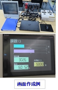 FA用途のタッチパネルにおける画面データの作成方法や制御装置であるPLCとの連携手法について実習を通して習得します。