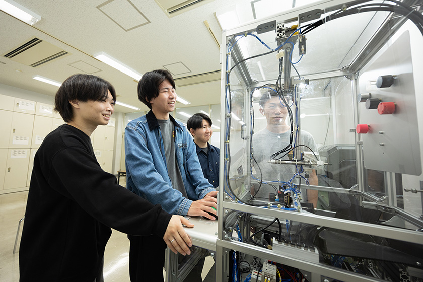 自分が得意なことを伸ばしながら、全く新しい知識をつけて可能性を広げたい人、また知識や技術を深堀して技術者としての奥深さを持ちたい人に向いている学校だと思います。1人1台の専用大型パソコンがあり、産業用ロボットも4人1班で1台を操作できます。実践的にものづくりを進める素晴らしい環境の中で学ぶことができますよ!