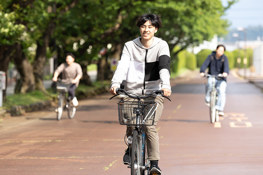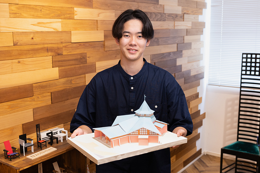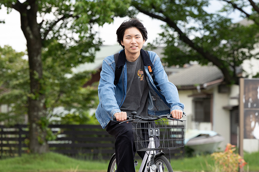 建築について幅広く学んでいます。木材加工や製図など実践的な授業が多いので高校時代よりランクアップした知識や技術が身につきます。現場見学の機会もあり、消防署やスーパーマーケットの工事現場を見学しました。僕は寮生活をしているのですが、平日朝夕2食付きで1ヵ月の寮費は約3万3000円と安く、通学も自転車で5分と近くて便利です!