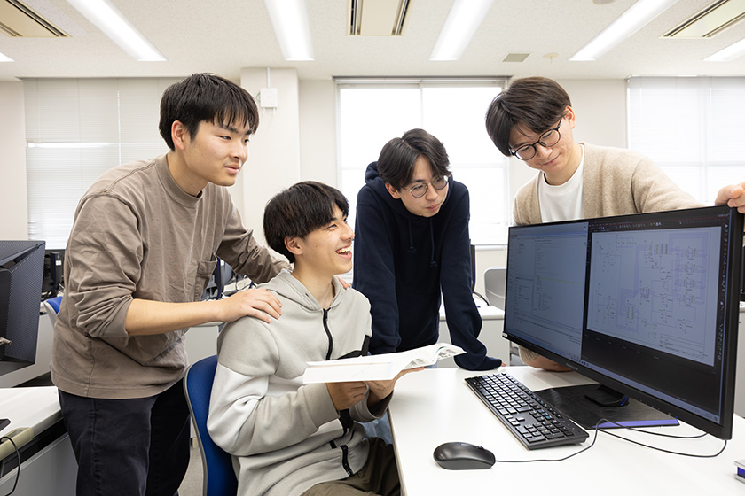 プログラミングとエレクトロニクスの融合を追求する電子情報技術科。少数精鋭の仲間たち、どんな質問にも即対応してくださる講師陣が輪になり、ぶつかり合いながら知識・技術を吸収しています。僕は2年間の専門課程修了後、応用課程に進学し自己を鍛え上げようと考えています。勉強・球技大会・文化祭等全てに全力投球中!