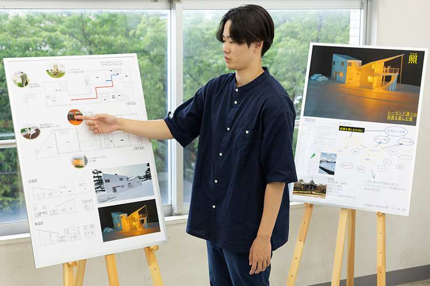 少人数制のため、先生が学生一人ひとりの個性や将来の目標を把握しており、なんでも気軽に相談できて安心です。僕はオープンキャンパスに参加して、施設や設備、学校の雰囲気に魅力を感じ入学を決めました。住居環境科の授業の様子は学校のSNSでも紹介しているので、ぜひ見てみてくださいね!