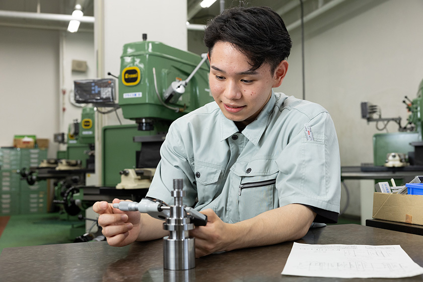 機械が好き!ものづくりが好き!そんな思いがあれば大丈夫です。2年間で基礎から実用的な技術までを学ぶことができるので、普通科出身で知識ゼロからでも授業・実習を通して少しづつできるようになっていきます。なんとかなる!ぜひ安心して来てください。