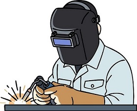 作業服(帽子・靴)・保護メガネ(貸出可)・溶接用保護具(貸出可)