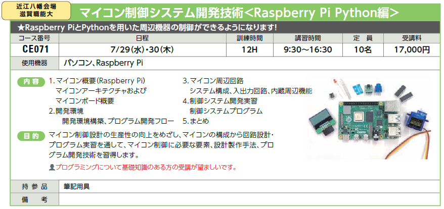 | CE071 | マイコン制御システム開発技術 <Raspberry Pi Python編> |