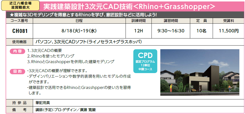 | CH081 | 実践建築設計3次元CAD技術 <Rhino+Grasshopper> |